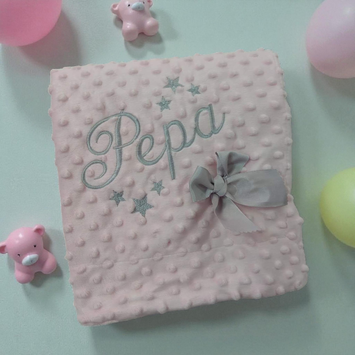 Envuelve los momentos más dulces con nuestra manta de topitos personalizada, ideal para regalar o conservar como recuerdo especial.