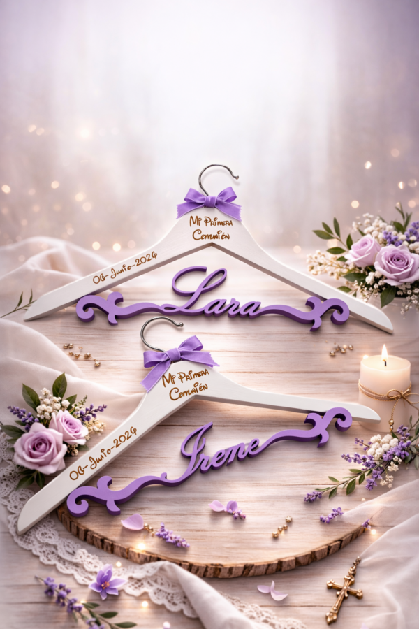 Nuestra percha personalizada de comunión es el detalle perfecto para lucir el traje o vestido en un día tan especial.