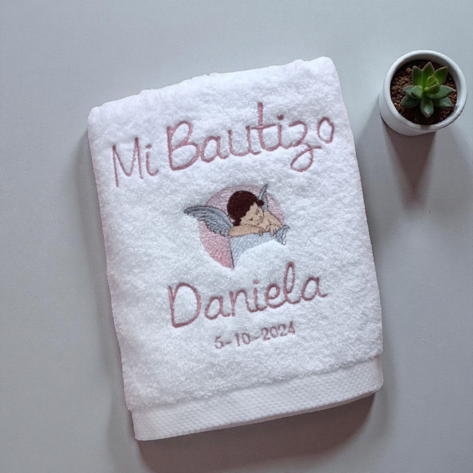 TOALLA DE BAUTIZO PERSONALIZADA CON ÁNGEL